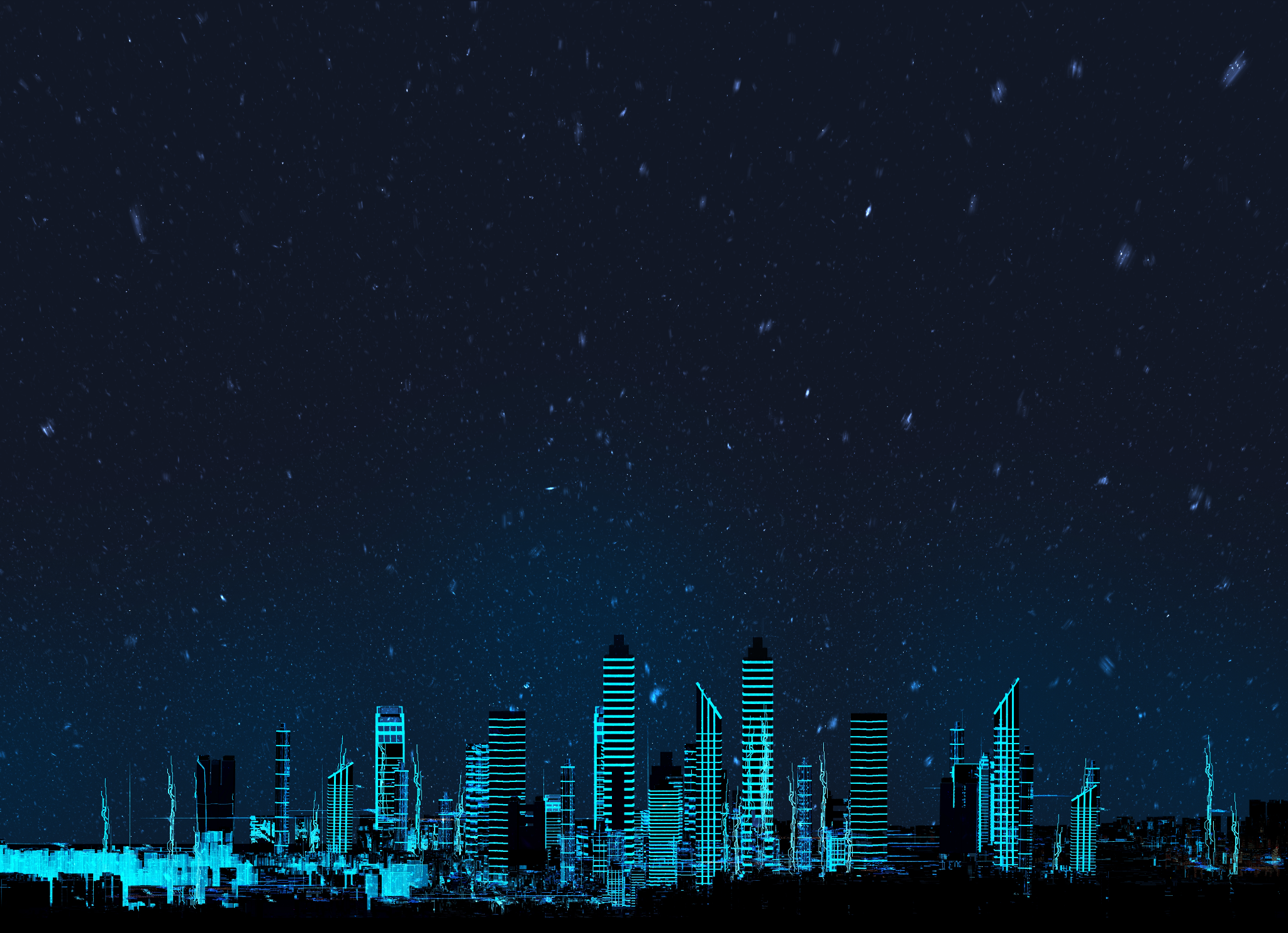 이곳은 도시 외곽, 아득하게 휘몰아치는 검은 눈보라 너머로 도시의 야경이 빛나고 있습니다.