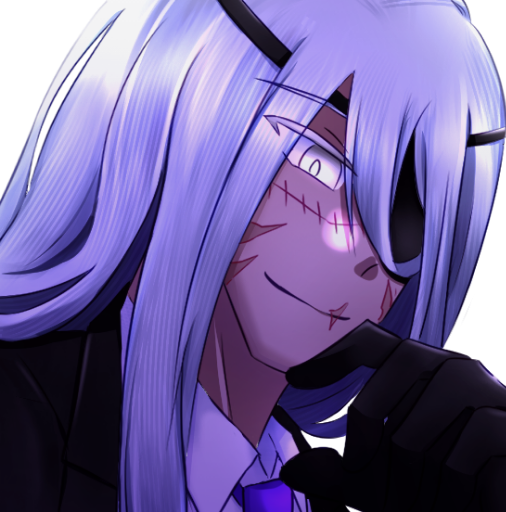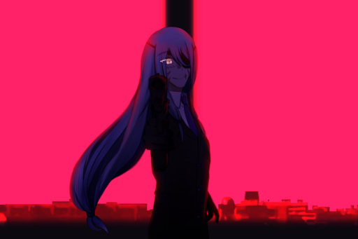 GM:지나치게 긴 머리카락은 오른쪽 눈만을 드러내고 있으며, 드러난 심장부에는 열쇠 모양 탄환이 꽂혀있습니다.